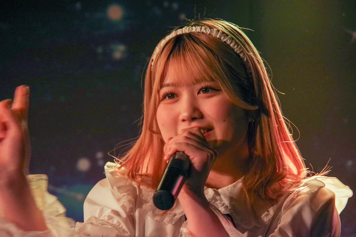 その後は、新曲で初披露となる「エール」を披露。「エール」はミュージカルのような壮大感のある曲で、歌詞には”憧れのステージに臨むアイドルの強い思い”が込められている。振り付けはメンバーの「はるね」が担当。初披露ということもあり、メンバーは少し緊張した様子を見せながらも、会場に新曲の世界観をしっかり届けた。