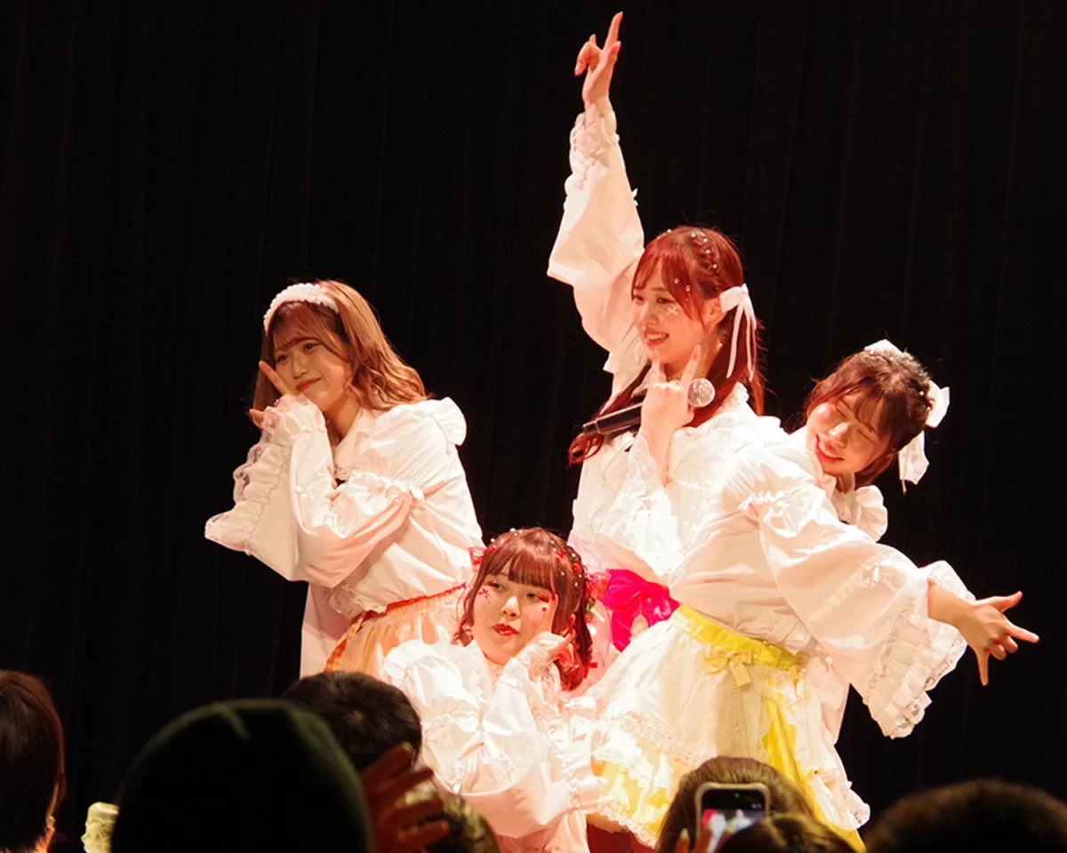 自己紹介を挟み、「ループ」「ポニテ」「るびちょこ」とアップテンポなナンバーを立て続けに披露。観客の声援も加わり、会場は早くも大きな一体感に包まれる。3期として活動を重ねてきた4人のパフォーマンスは確かな成長を感じさせ、ダンスや歌の表現力の向上がステージ全体の輝きを一層引き立てていた。